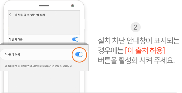 설치 시 “기기를 손상시킬 수 있습니다.” 라는 문구가 노출될 수 있으나,